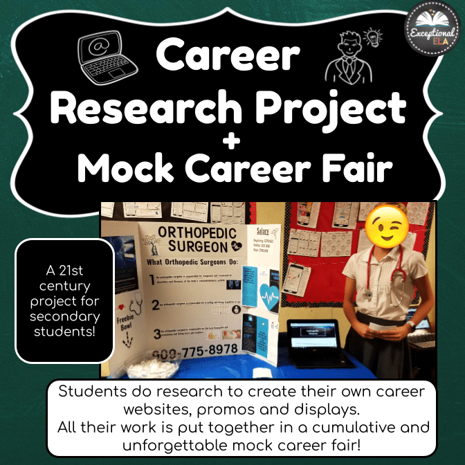 With this resource, students research a career and simulate a career fair in your classroom. Invite parents and staff to check out their hard work!